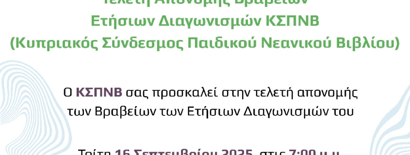 Τελετή απονομής βραβείων ετήσιων Διαγωνισμών από Κυπριακό Σύνδεσμο Παιδικού Νεανικού Βιβλίου, 16/9/25